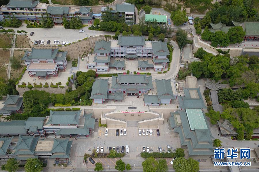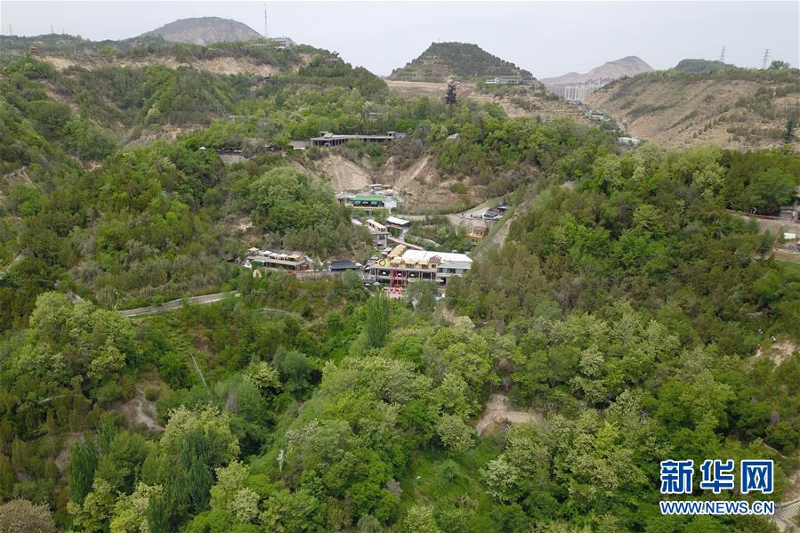 這是5月18日在蘭州市城關(guān)區(qū)拍攝的皋蘭山下五泉山公園初夏景象(無(wú)人機(jī)照片)。