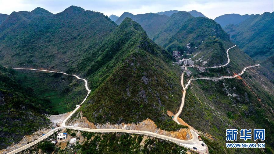 這是大化瑤族自治縣七百弄鄉(xiāng)天上人間景點附近的盤山公路(5月13日攝,無人機照片)。新華社記者曹祎銘攝