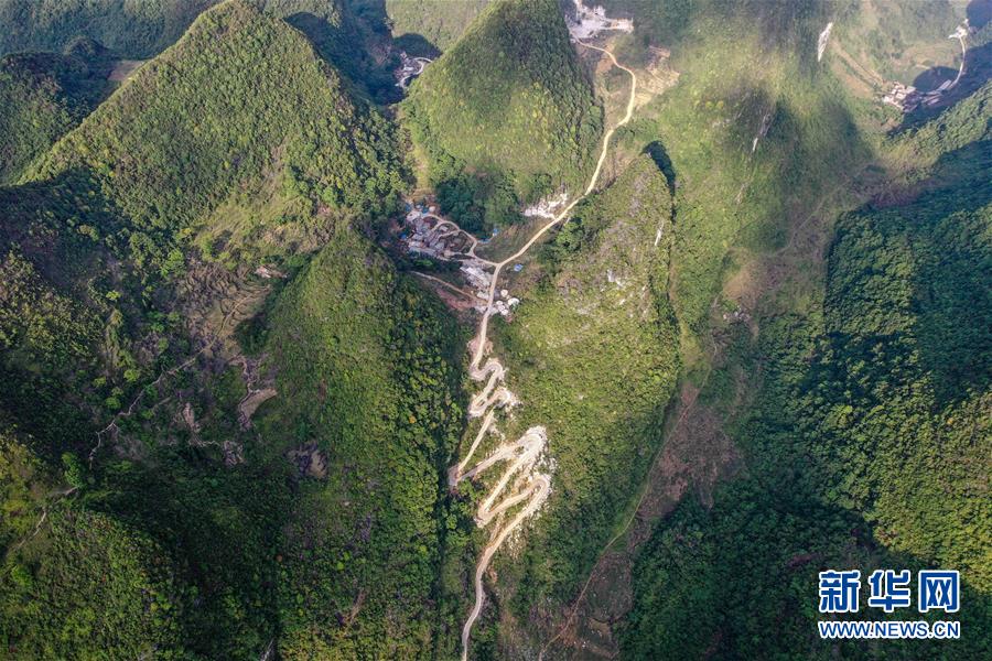這是在進(jìn)行路面硬化的大化瑤族自治縣七百弄鄉(xiāng)弄合村弄魯屯到弄確屯的屯級路(5月14日攝,無人機照片)。新華社記者曹祎銘攝