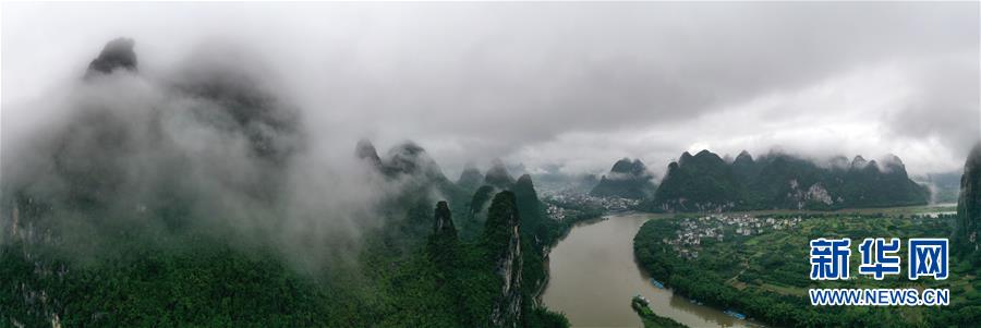 這是在廣西桂林市陽朔縣興坪鎮(zhèn)拍攝的山水風光(5月21日攝,無人機全景照片)?!吧n蒼森八桂,茲地在湘南。江作青羅帶,山如碧玉篸……”一千多年前,唐朝詩人韓愈寫盡桂林山水之美。初夏時節(jié),在廣西桂林市陽朔縣興坪鎮(zhèn),藍天白云下,煙雨朦朧中,桂林山水盡顯秀美。新華社記者周華攝