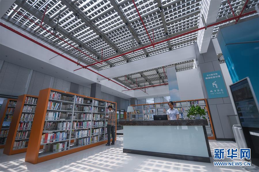 5月21日,市民在新能源小鎮(zhèn)“城市客廳”的圖書館內(nèi)看書。新華社記者徐昱攝