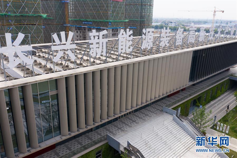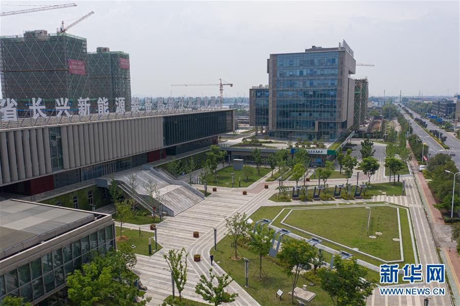 5月21日,空中俯瞰新能源小鎮(zhèn)“城市客廳”(無人機照片)。新華社記者徐昱攝