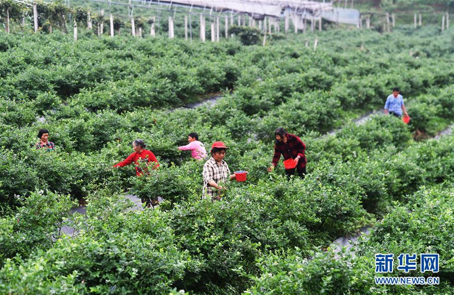 5月21日,村民在茨竹鎮(zhèn)大面坡村藍桂香園藍莓基地采摘藍莓。近日,位于重慶市渝北區(qū)茨竹鎮(zhèn)大面坡村的600余畝藍莓陸續(xù)進入采摘期。近年來,茨竹鎮(zhèn)探索“公司+基地+農(nóng)戶”的模式,利用良好的自然條件,積極發(fā)展高山藍莓產(chǎn)業(yè),在取得良好經(jīng)濟效益的同時,有效帶動當?shù)卮迕窬蜆I(yè)增收。新華社記者王全超攝