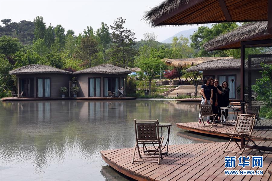 5月20日,游客在天津市薊州區(qū)下?tīng)I(yíng)鎮(zhèn)小港村“不知山鄉(xiāng)宿”休閑拍照。新華社記者 馬平 攝