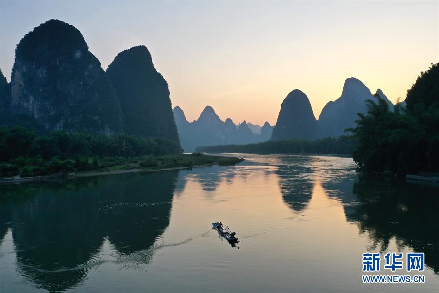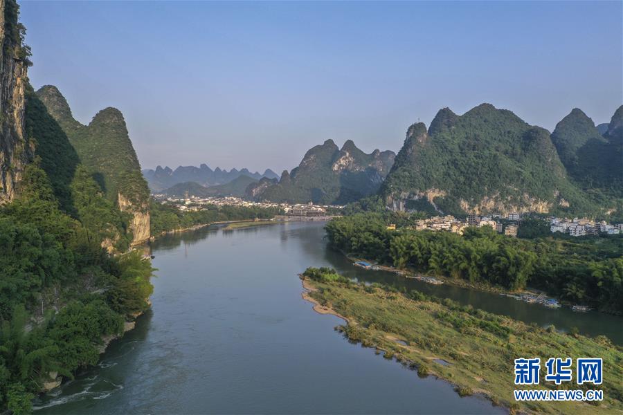 這是在廣西桂林市陽朔縣興坪鎮(zhèn)拍攝的風光(5月19日攝,無人機照片)?!吧n蒼森八桂,茲地在湘南。江作青羅帶,山如碧玉篸……”一千多年前,唐朝詩人韓愈寫盡桂林山水之美。初夏時節(jié),在廣西桂林市陽朔縣興坪鎮(zhèn),藍天白云下,煙雨朦朧中,桂林山水盡顯秀美。新華社記者 周華 攝