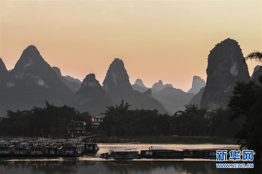 這是在廣西桂林市陽朔縣興坪鎮(zhèn)拍攝的山水風光(5月19日攝,無人機全景照片)?!吧n蒼森八桂,茲地在湘南。江作青羅帶,山如碧玉篸……”一千多年前,唐朝詩人韓愈寫盡桂林山水之美。初夏時節(jié),在廣西桂林市陽朔縣興坪鎮(zhèn),藍天白云下,煙雨朦朧中,桂林山水盡顯秀美。新華社記者 周華 攝