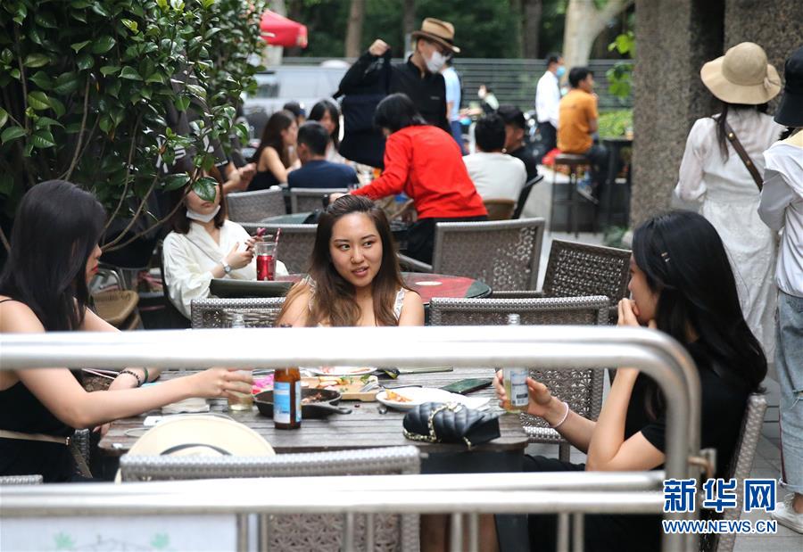 5月24日,游客在上海思南公館露天夜市小憩。新華社記者陳飛攝