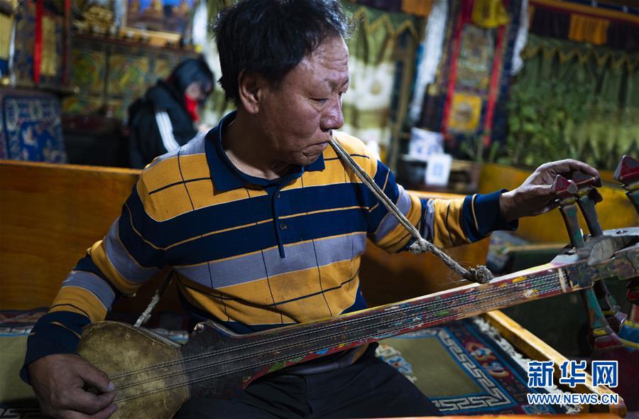 “牛頭旅館”老板多吉在旅館里給游客彈六弦琴(5月17日攝)。新華社記者普布扎西攝