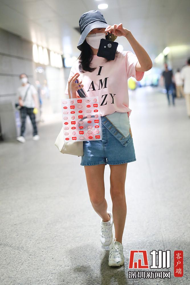 2020年5月25日,上海,張雨綺現(xiàn)身機(jī)場。她穿粉嫩T恤少女感十足,搭配牛仔短褲大秀美腿,拎包走機(jī)場笑眼彎彎女神范。