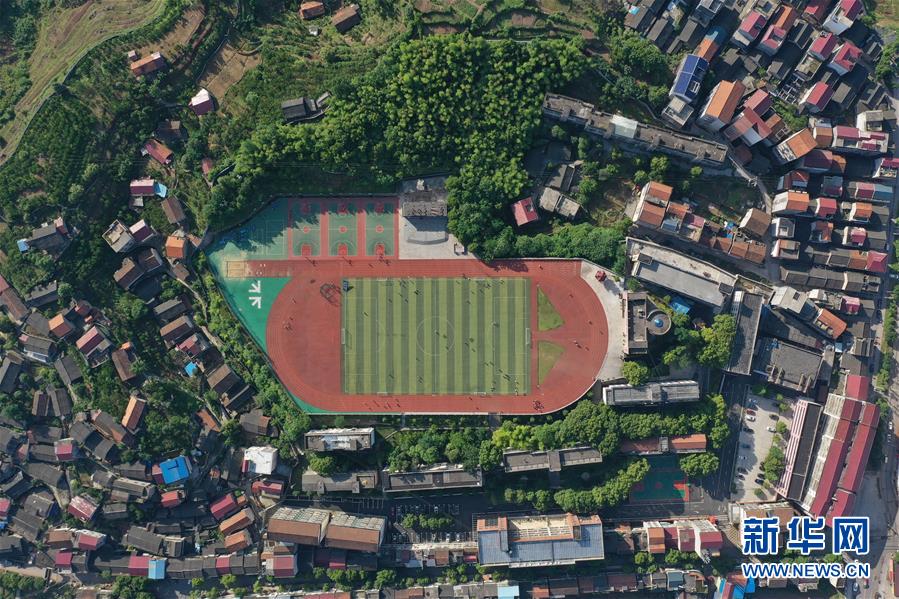 位于湖南省湘西土家族苗族自治州的瀘溪縣第五中學(xué)(5月22日攝,無(wú)人機(jī)照片)。新華社記者薛宇舸攝