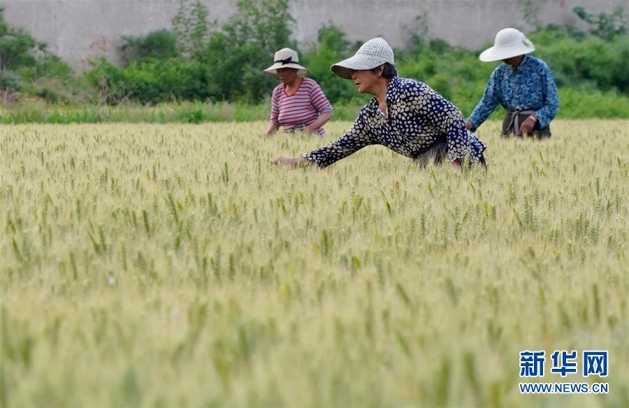5月26日,農(nóng)民在內(nèi)丘縣東龐前街村麥田清理雜麥。夏日時節(jié),河北省邢臺市內(nèi)丘縣農(nóng)民搶抓農(nóng)時開展麥田后期管理,為小麥增產(chǎn)豐收打好基礎(chǔ)。新華社記者朱旭東攝