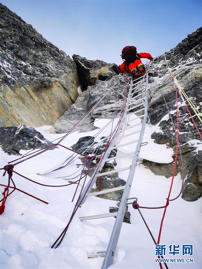 5月27日,2020珠峰高程測量登山隊正在向珠峰峰頂挺進。新華社特約記者扎西次仁攝
