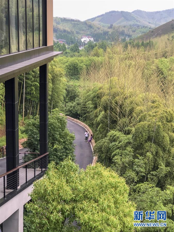 5月26日,游客在湖州慧心谷綠奢度假村休閑。新華社記者張玉薇攝