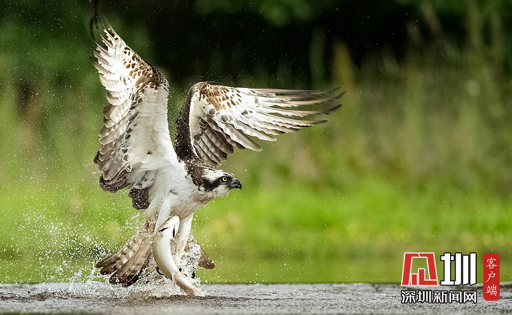 魚鷹俯沖入水捕魚 伺機而動“快準狠”