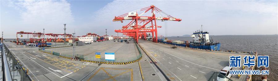 5月28日拍攝的上海洋山港四期自動化碼頭(全景照片)。