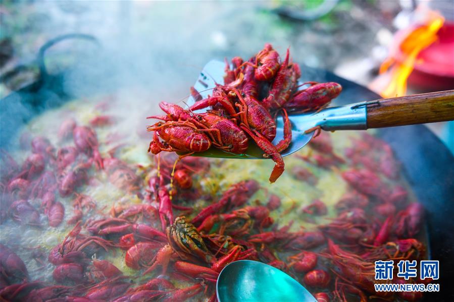 5月30日,廚師在龍蝦狂歡節(jié)現(xiàn)場烹制小龍蝦。
