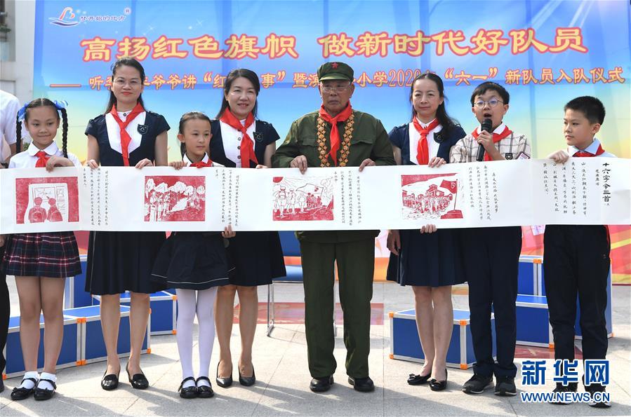 5月29日,孩子們向李延年贈送“紅色畫卷”?!傲弧眹H兒童節(jié)來臨之際,“共和國勛章”獲得者、老一輩戰(zhàn)斗英雄李延年來到廣西南寧市濱湖路小學給孩子們講述戰(zhàn)爭年代的紅色故事,寄語他們好好學習、努力奮斗。孩子們向李延年贈送了師生共繪的“紅色畫卷”,向老英雄致敬。新華社記者周華攝