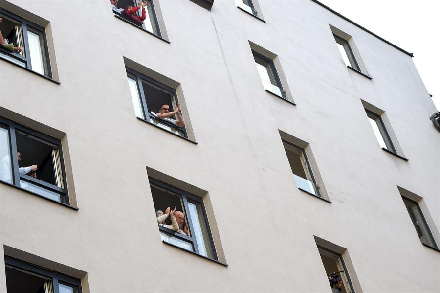 5月30日,在奧地利維也納“時(shí)代精神”酒店內(nèi),人們?cè)诜块g窗口欣賞歌劇演出。當(dāng)日,奧地利首都維也納的一家名為“時(shí)代精神”的酒店為迎接“解封”后恢復(fù)營(yíng)業(yè),在其庭院內(nèi)舉辦“窗口音樂(lè)會(huì)”。按照奧政府此前公布的“解封”時(shí)間表,從29日起,賓館酒店以及健身房、游泳池和游樂(lè)場(chǎng)等休閑娛樂(lè)場(chǎng)所有條件恢復(fù)運(yùn)營(yíng)。新華社記者郭晨攝