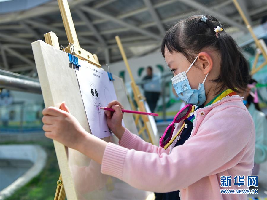 5月31日,小朋友在西寧熊貓館內繪畫?!傲弧眹H兒童節(jié)來臨之際,西寧熊貓館組織小朋友參觀游園、現(xiàn)場繪畫、制作熊貓創(chuàng)意產品,同時還給館里的大熊貓準備了兒童節(jié)“大餐”,與小朋友們一起迎接節(jié)日。新華社記者張龍攝