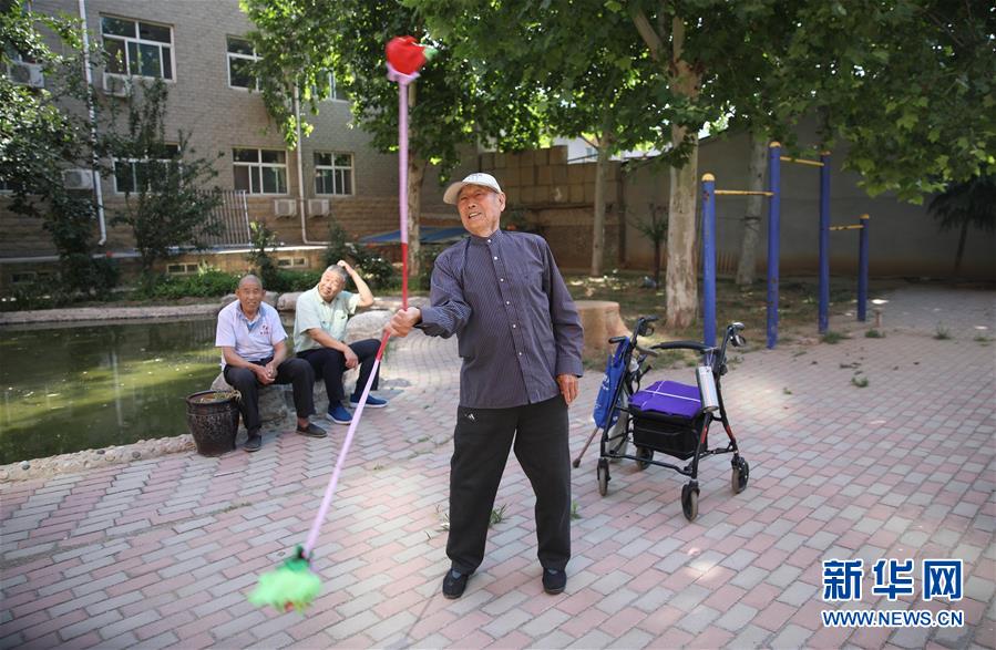 6月1日,在正定縣塔元莊村勁松老年公寓,老人在鍛煉身體。新華社記者朱旭東攝。