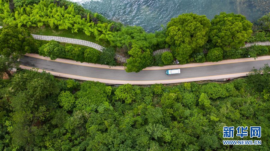 6月2日,車輛在阿哈湖國家濕地公園內(nèi)行駛(無人機(jī)照片)。初夏時節(jié),貴州省貴陽市阿哈湖國家濕地公園草木蒼翠,風(fēng)景如畫,吸引人們前來休閑游玩。新華社記者陶亮攝。