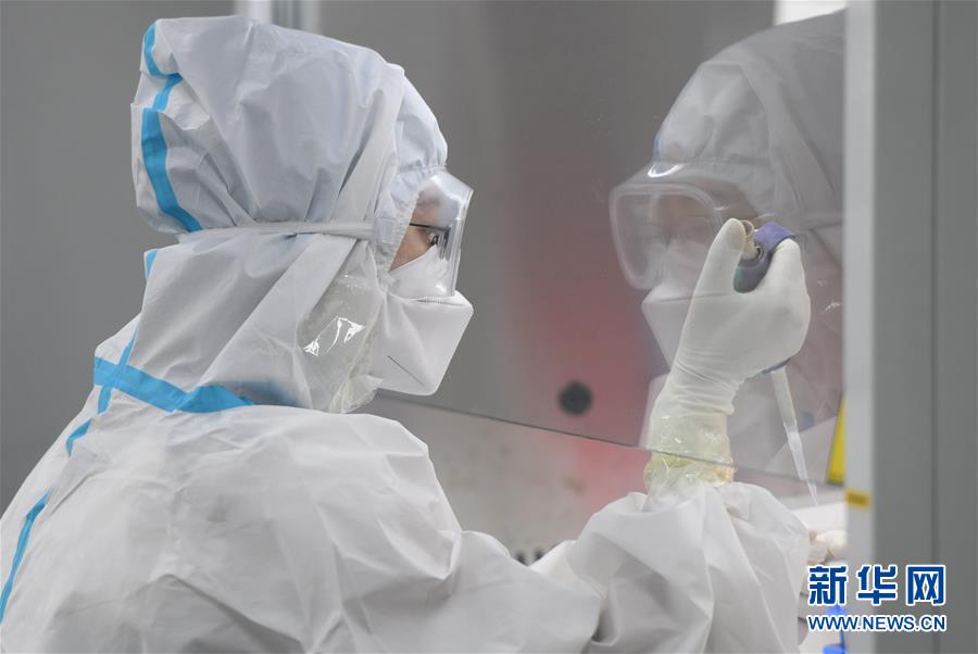 6月2日,在武漢金域醫(yī)學(xué)檢驗(yàn)所里,檢測人員在工作。新華社記者程敏攝。