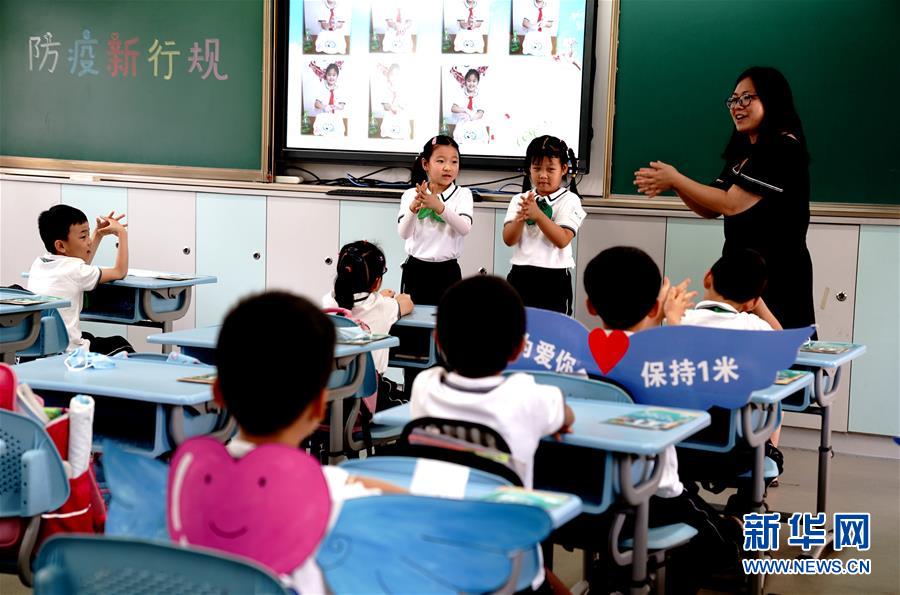 6月2日,上海閔行區(qū)鑫都小學(xué)的學(xué)生走進(jìn)校園。當(dāng)日,上海小學(xué)一、二、三年級(jí)學(xué)生返校開(kāi)學(xué)。新華社記者張建松攝。