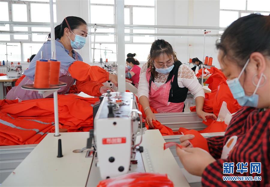 6月2日,工人在尚義縣大青溝鎮(zhèn)的易地扶貧搬遷集中安置小區(qū)附近一家扶貧工廠工作。新華社記者楊世堯攝。