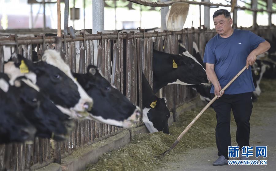 6月3日,村民在深州市榆科鎮(zhèn)郝家莊村奶牛養(yǎng)殖扶貧基地飼喂奶牛。今年以來(lái),河北省深州市圍繞決勝全面小康、決戰(zhàn)脫貧攻堅(jiān)任務(wù)目標(biāo),在推進(jìn)產(chǎn)業(yè)扶貧的過(guò)程中注重激發(fā)內(nèi)生動(dòng)力,通過(guò)電商扶貧、扶貧車(chē)間、特色種植養(yǎng)殖等多種形式,提升自我“造血”功能,提高貧困群眾受益度。新華社記者李曉果攝。
