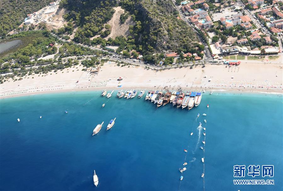 這是2018年7月23日在土耳其西南部的費(fèi)特希耶拍攝的海灘和游船。6月5日是第47個(gè)聯(lián)合國(guó)世界環(huán)境日,今年的主題為“關(guān)愛(ài)自然刻不容緩”。新華社記者賀燦鈴攝。