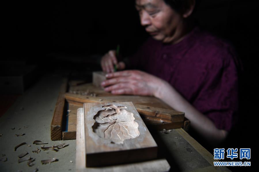 5月20日,安徽省非物質(zhì)文化遺產(chǎn)徽墨代表性傳承人項德勝在雕刻墨模。新華社記者劉軍喜攝。