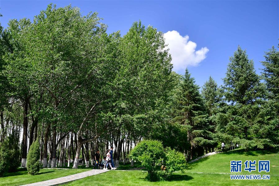 5月30日,西寧市民在青海省西寧市南山公園內(nèi)散步。近年來,青海省西寧市大力開展植樹造林,在半干旱氣候、濕陷性黃土的現(xiàn)實(shí)情況下破解種樹難題,目前全市建成區(qū)綠化覆蓋率已達(dá)40.5%。新華社記者張龍攝。