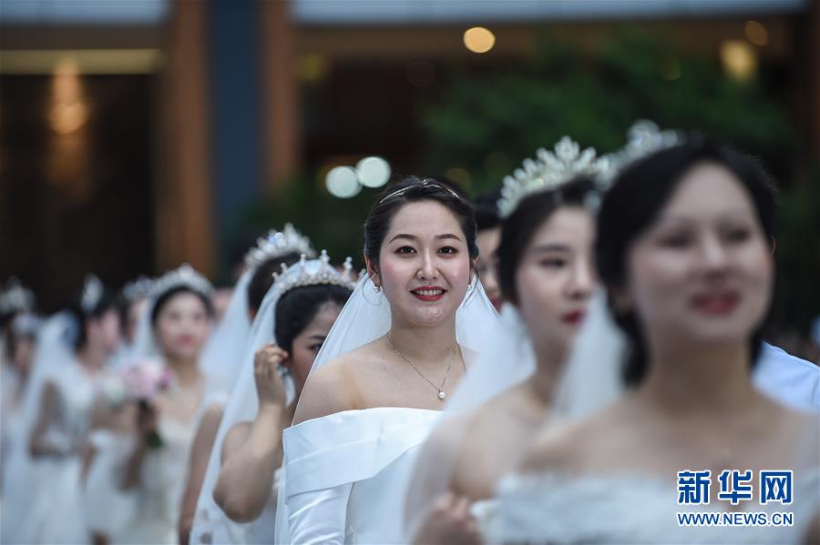 6月6日,新人在海南博鰲樂城國際醫(yī)療旅游先行區(qū)參加集體婚禮。當(dāng)日,來自北京、武漢、廣州等地的30對新人在海南博鰲樂城國際醫(yī)療旅游先行區(qū)參加了一場集體婚禮。參加婚禮的部分新人此前因參加湖北的抗疫工作而推遲了婚期。  新華社記者 張麗蕓 攝