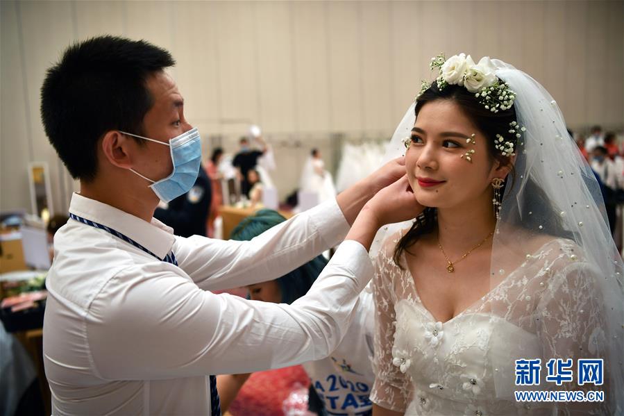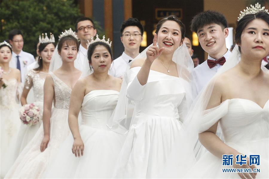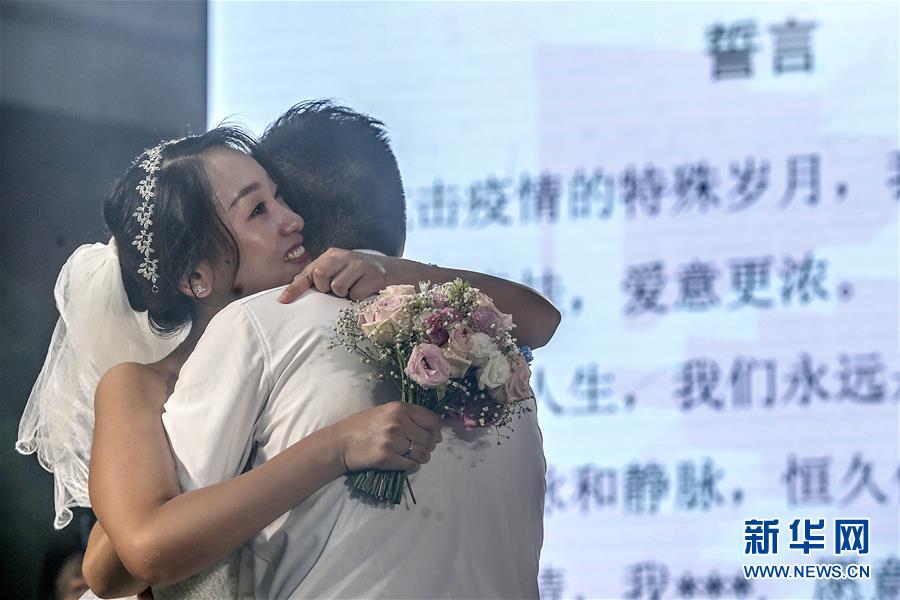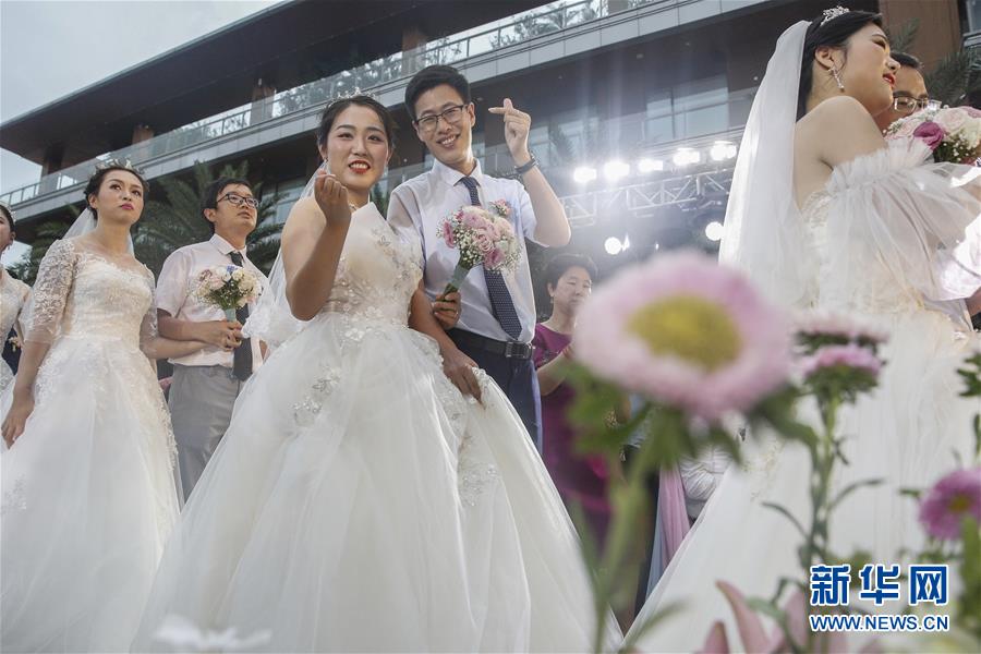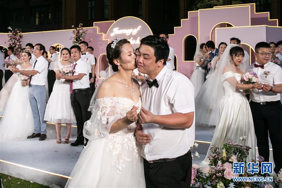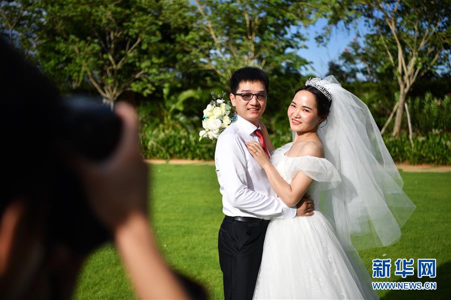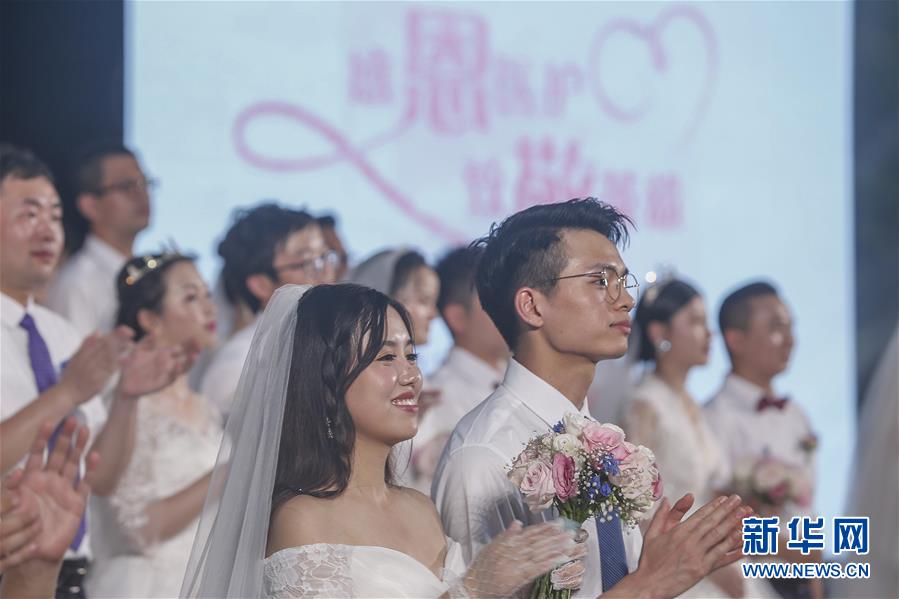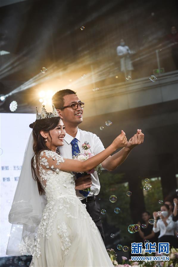 6月6日,新人在海南博鰲樂城國際醫(yī)療旅游先行區(qū)參加集體婚禮。當(dāng)日,來自北京、武漢、廣州等地的30對新人在海南博鰲樂城國際醫(yī)療旅游先行區(qū)參加了一場集體婚禮。參加婚禮的部分新人此前因參加湖北的抗疫工作而推遲了婚期。  新華社記者 張麗蕓 攝