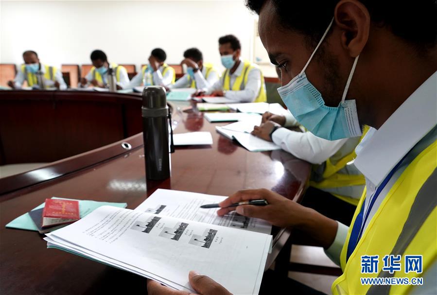 6月5日,在鄭州機(jī)務(wù)段,特瑞薩(前)為實(shí)習(xí)做準(zhǔn)備工作。 新華社記者 李安 攝