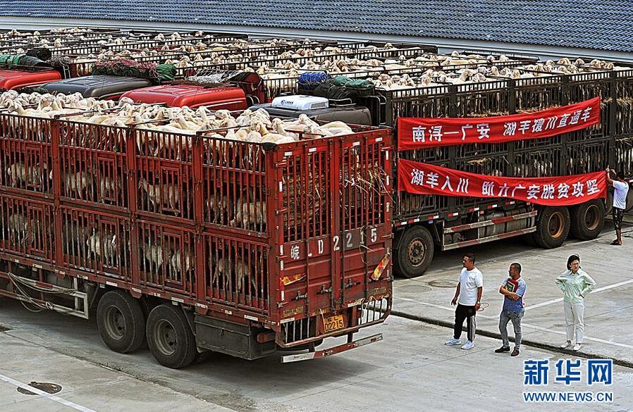 6月7日,裝運(yùn)湖羊的貨車準(zhǔn)備發(fā)車。當(dāng)日,浙江省湖州市南潯區(qū)湖羊養(yǎng)殖場(chǎng)飼養(yǎng)的五千余頭湖羊啟程運(yùn)往該區(qū)對(duì)口幫扶的四川省廣安市廣安區(qū)。2018年以來(lái),南潯區(qū)依托湖羊養(yǎng)殖產(chǎn)業(yè)優(yōu)勢(shì),積極實(shí)施“湖羊入川”和“湖羊致富”工程,向?qū)趲头龅貐^(qū)提供優(yōu)質(zhì)湖羊種羊和湖羊養(yǎng)殖技術(shù)指導(dǎo)。截至目前,南潯區(qū)已向廣安等地提供1.2萬(wàn)余頭扶貧湖羊。新華社記者譚進(jìn)攝