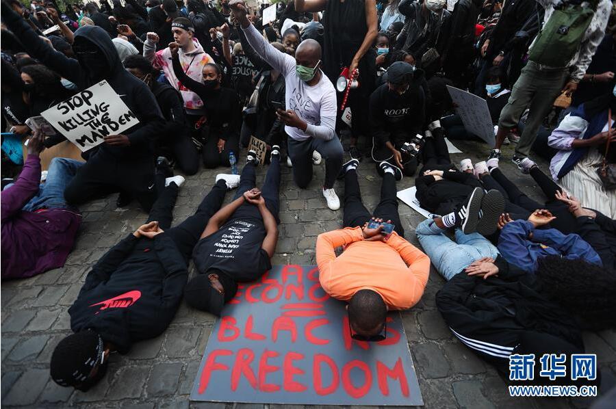 6月7日,民眾在比利時(shí)布魯塞爾市中心的司法宮附近參加示威活動(dòng)。比利時(shí)民眾當(dāng)日在布魯塞爾市中心的司法宮附近舉行示威活動(dòng),抗議美國明尼阿波利斯市警察暴力執(zhí)法致非裔男子喬治·弗洛伊德死亡。新華社記者鄭煥松攝