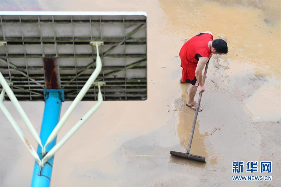6月8日,在永州市江華瑤族自治縣白芒營鎮(zhèn)車下完全小學,工作人員在校園里清淤。受近日持續(xù)強降雨影響,湖南省永州市江華瑤族自治縣發(fā)生洪澇災害。6月8日,永州市江華瑤族自治縣白芒營鎮(zhèn)車下完全小學開展清淤、消毒工作,為6月9日恢復上課做準備。新華社記者陳澤國攝