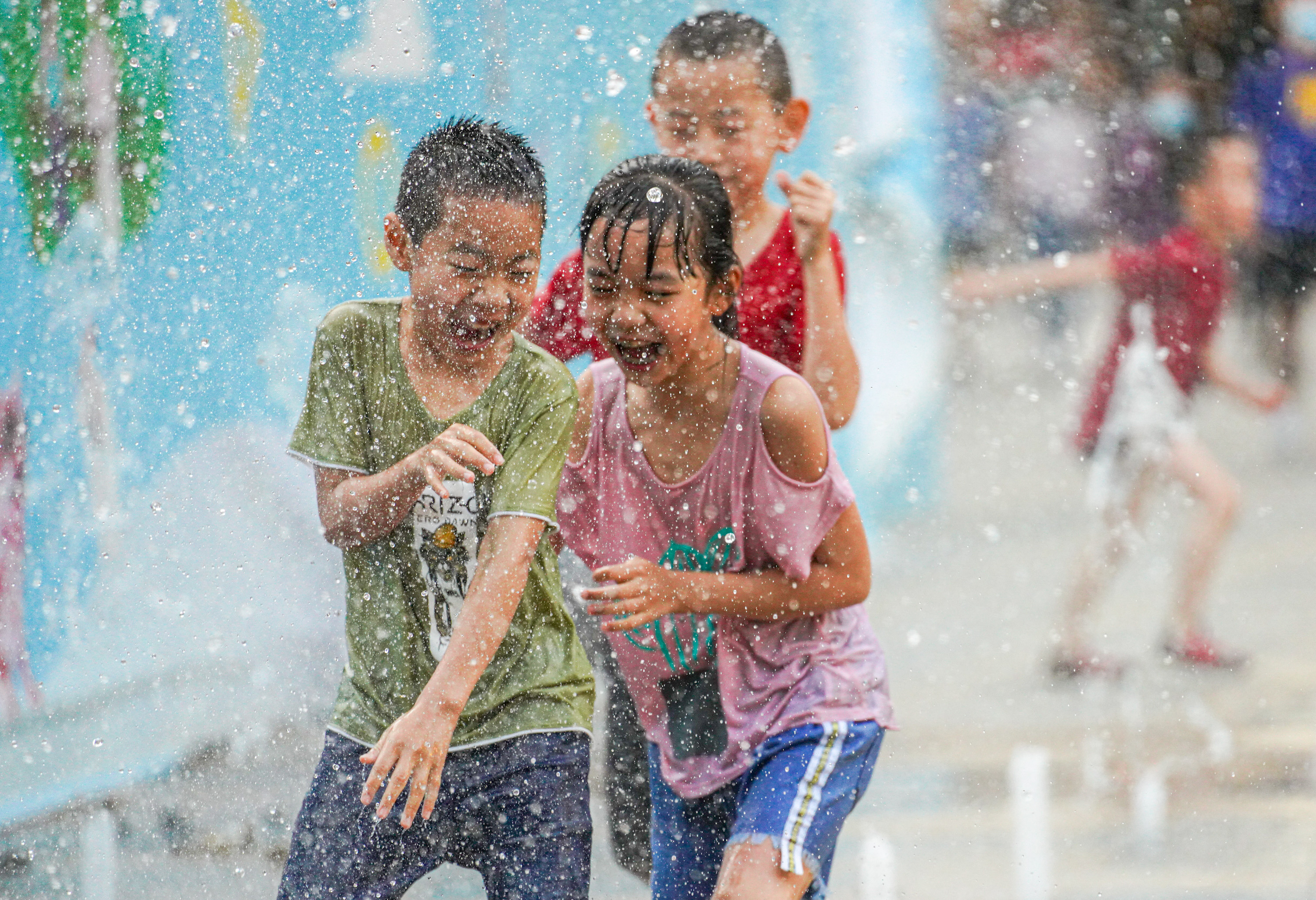 2020年6月9日?qǐng)?bào)道,近期,今年以來最大范圍高溫天氣“炙烤”北方,多地高溫屢創(chuàng)紀(jì)錄,中央氣象臺(tái)已連續(xù)3天發(fā)布高溫預(yù)警,同時(shí),高溫少雨也導(dǎo)致一些地區(qū)出現(xiàn)嚴(yán)重旱情。圖為2020年6月4日,北京三里屯噴泉廣場(chǎng),很多孩子聚集在此,水中玩耍異?;鸨?。