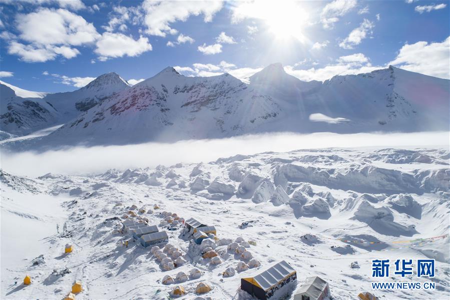 這是海拔6500米的珠峰前進(jìn)營(yíng)地(無(wú)人機(jī)照片,5月22日攝)。從空中俯瞰珠穆朗瑪峰北坡,生機(jī)勃勃的高原濕地、蜿蜒曲折的盤山公路、壯麗秀美的絨布冰川,還有安靜的村莊和熱鬧的登山營(yíng)地,共同構(gòu)成一幅壯美畫卷。新華社記者晉美多吉攝