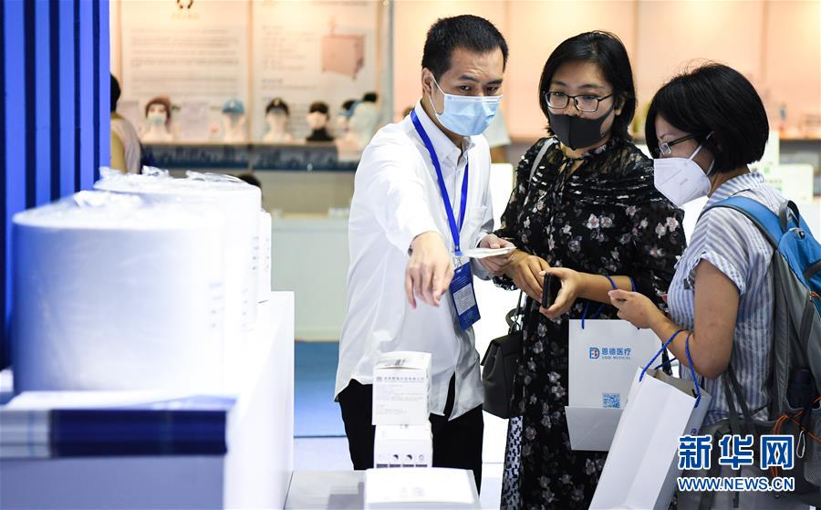 6月10日拍攝的展會(huì)上的口罩和防護(hù)罩產(chǎn)品。當(dāng)日,廣州國際防疫物資展覽會(huì)在保利世貿(mào)博覽館舉行。本次展會(huì)面積共計(jì)3.6萬平方米,設(shè)有防疫產(chǎn)品、設(shè)備、綜合服務(wù)、原輔料等4個(gè)展區(qū),參展企業(yè)約600家。新華社記者鄧華攝