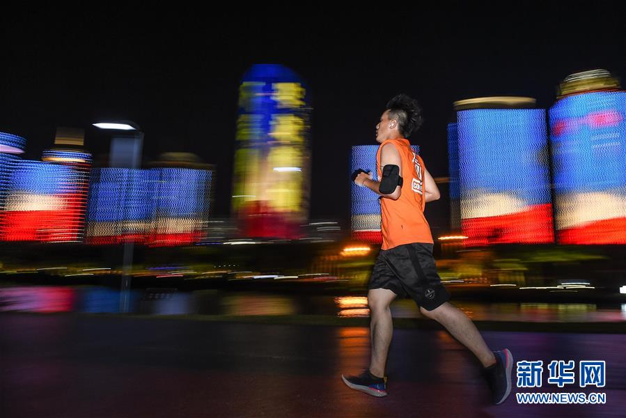 一位市民在海口萬綠園夜跑(5月15日拍攝)。近年來,夜跑成為越來越多都市人熱衷的健身方式之一。在海南??冢慨斠鼓唤蹬R,“夜跑族”來到??谌f綠園、世紀公園等夜跑場所跑步,用一身酣暢淋漓的汗水擺脫白天工作中的壓力,享受跑步帶來的歡愉。新華社記者 蒲曉旭 攝