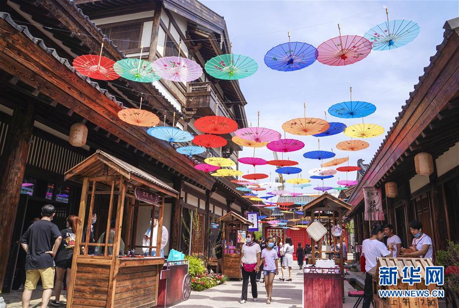 6月13日,市民在長(zhǎng)春市世茂蓮花山小鎮(zhèn)寬厚里商街參觀游覽。當(dāng)日是“文化和自然遺產(chǎn)日”。吉林長(zhǎng)春首屆蓮花山消夏生活節(jié)在世茂蓮花山小鎮(zhèn)舉行。活動(dòng)將非遺展示與假日消暑休閑相結(jié)合,讓游人在“古色古香”的油紙傘巷中品傳統(tǒng)文化魅力,享夏日休閑愜意。新華社記者許暢攝。