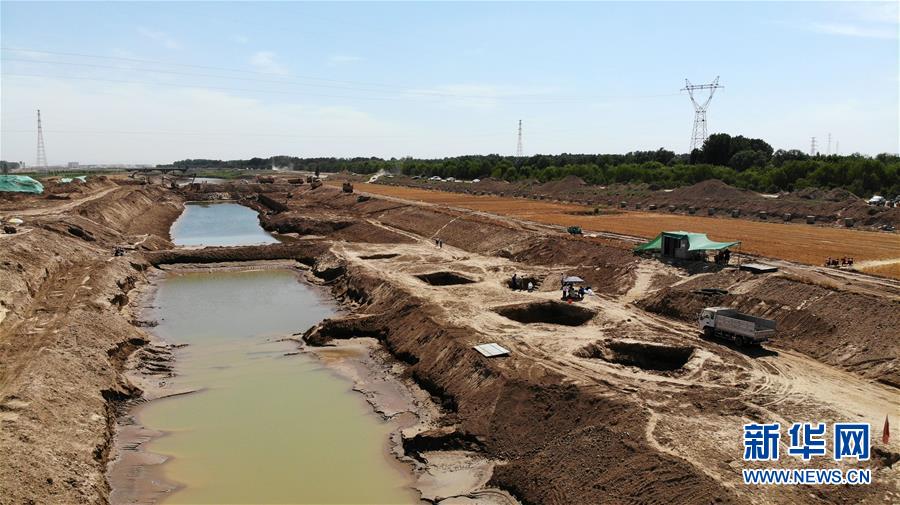 這是6月14日拍攝的山東小清河章丘段考古發(fā)掘現(xiàn)場。近日,濟(jì)南市考古研究所考古工作隊(duì)在對(duì)小清河章丘段進(jìn)行考古調(diào)查和勘探時(shí),發(fā)現(xiàn)了13座年代集中在北朝末期至唐朝初期的古墓。新華社記者 王凱 攝