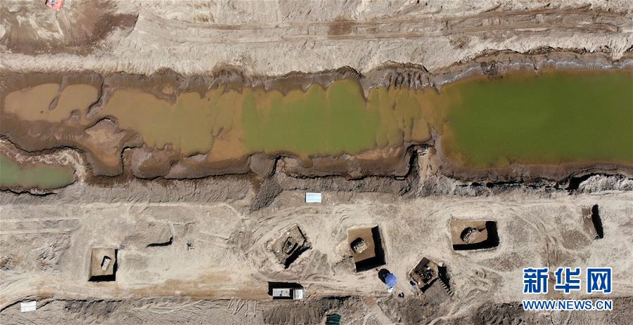 這是6月14日拍攝的山東小清河章丘段考古發(fā)掘現(xiàn)場(無人機(jī)照片)。近日,濟(jì)南市考古研究所考古工作隊(duì)在對(duì)小清河章丘段進(jìn)行考古調(diào)查和勘探時(shí),發(fā)現(xiàn)了13座年代集中在北朝末期至唐朝初期的古墓。新華社記者 王凱 攝