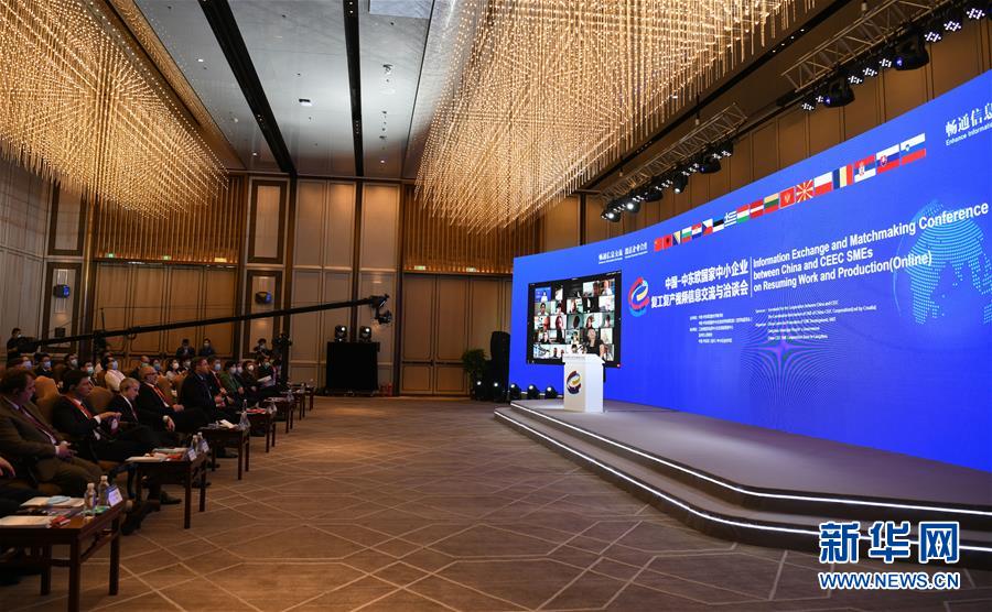 6月16日,中國-中東歐國家中小企業(yè)復工復產(chǎn)視頻信息交流與洽談會在北京舉行,河北省滄州市設分會場。本次會議以“暢通信息交流,激活企業(yè)合作”為主題,157家來自中國與135家來自17個中東歐國家的中小企業(yè)和機構圍繞“產(chǎn)業(yè)、工業(yè)制造”“貿易投資、農業(yè)”“旅游、人文交流”“醫(yī)療衛(wèi)生”四大版塊進行洽談對接。新華社記者 金良快 攝