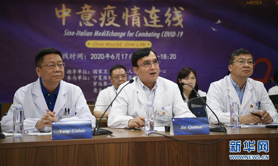 6月17日,寧夏醫(yī)科大學(xué)總醫(yī)院專(zhuān)家與羅馬第一公共醫(yī)療衛(wèi)生中心醫(yī)務(wù)人員進(jìn)行視頻交流。當(dāng)日,寧夏醫(yī)科大學(xué)總醫(yī)院專(zhuān)家通過(guò)視頻連線,與意大利羅馬第一公共醫(yī)療衛(wèi)生中心一線醫(yī)務(wù)人員分享防疫抗疫經(jīng)驗(yàn),共克時(shí)艱。新華社記者 王鵬 攝