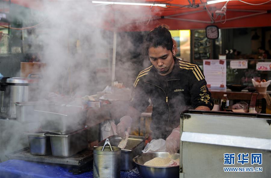 6月19日,一名美食攤主在澳大利亞悉尼查茨伍德鎮(zhèn)忙碌。新華社記者白雪飛攝