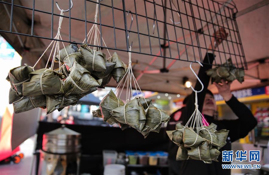 6月19日,華人攤主江阿姨在澳大利亞悉尼查茨伍德鎮(zhèn)準備銷售粽子。新華社記者白雪飛攝