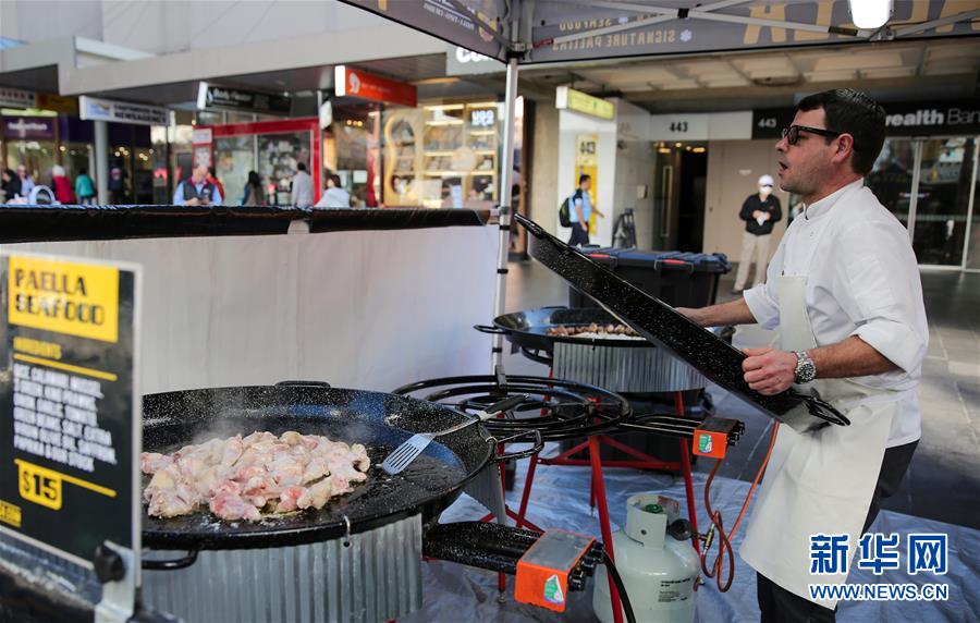 6月19日,一名美食攤主在澳大利亞悉尼查茨伍德鎮(zhèn)忙碌。新華社記者白雪飛攝